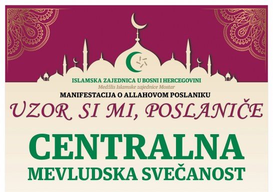 Centralna mevludska svečanost povodom 12 rebiu-l-evvela, dana rođenja Muhameda a.s. na području Medžlisa IZ-e Mostar bit će upriličena 8. novembra 2019.godine (petak). Program u kojem učestvuju imami Medžlisa IZ-e Mostar, hor Karađoz-begove medrese i hor Medžlisa IZ-e Mostar održat...