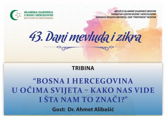 Medžlis IZ-e Mostar centralnu mevludsku svečanost u povodu mubarek noći Lejletu-r-regaib organizirat će u četvrtak 22.03.2018.god. poslije akšam-namaza u Hadži Tere Jahje džamiji na Carini.