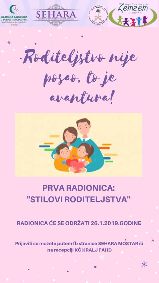 Ukoliko želite biti dio ove radionice možete se prijaviti putem fb stranice Sehara Mostar ili na recepciji KC Kralj Fahd ostavljajući Vaše podatke (ime i prezime i kontakat telefon)