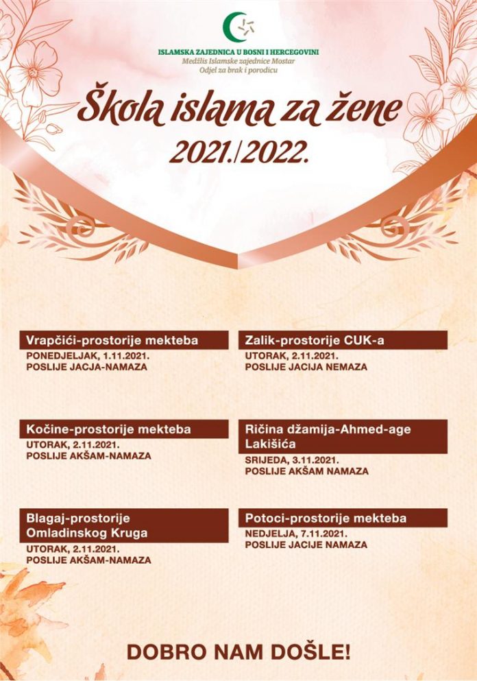 Odjel za brak i porodicu Medžlisa Islamske zajednice Mostar počinje sa novim ciklusom edukativnog programa“ Škola islama za žene“