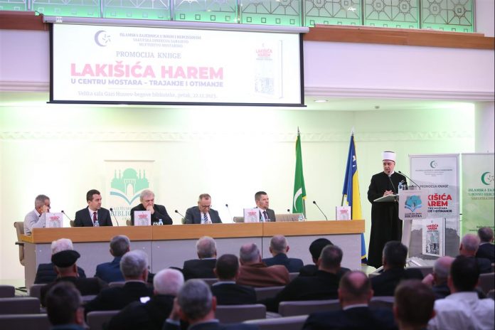 U prepunoj Sali Gazi Husrev-begove biblioteke je u petak, 22. decembra 2023. godine, nakon džuma-namaza, u organizaciji Mostarskog muftijstva i Vakufske direkcije u Sarajevu promovirana knjiga „Lakišića harem u centru Mostara – trajanje i otimanje“.