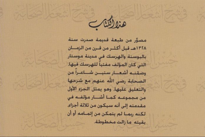 Fondacija Kralj Abdulaziz iz Saudijske Arabije ponovo je 2013. odštampala knjigu mostarskog muftije Ali(ja) Fehmi ef. Džabića „Husn as-sahaba fi šarh aš’ar as-sahaba“ (“حسن الصحابة في شرح أشعار الصحابة”).